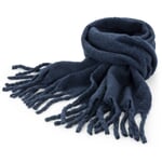 This scarf, which Knowledge Cotton Apparel makes from recycled polyester, is light, warm and incredibly fluffy. The voluminous knitted fabric tapers into striking thick fringes at the ends of the scarf.